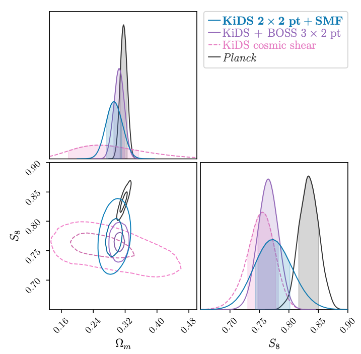 We present constraints on the flat ΛCDM cosmological model through a joint analysis of galaxy abundance, galaxy clustering and galaxy-galaxy lensing observables with the Kilo-Degree Survey. Our theoretical model combines a flexible conditional stellar mass function, to describe the galaxy-halo connection, with a cosmological N-body simulation-calibrated halo model to describe the non-linear matter field. Our magnitude-limited bright galaxy sample combines 9-band optical-to-near-infrared photometry with an extensive and complete spectroscopic training sample to provide accurate redshift and stellar mass estimates. Our faint galaxy sample provides a background of accurately calibrated lensing measurements. We constrain the structure growth parameter, and the matter density parameter. This analysis therefore brings attention to the significant constraining power in the often-excluded non-linear scales for galaxy clustering and galaxy-galaxy lensing observables. By adopting a theoretical model that accounts for non-linear halo bias, halo exclusion, scale-dependent galaxy bias and the impact of baryon feedback, this work demonstrates the potential and a way forward to include non-linear scales in cosmological analyses.